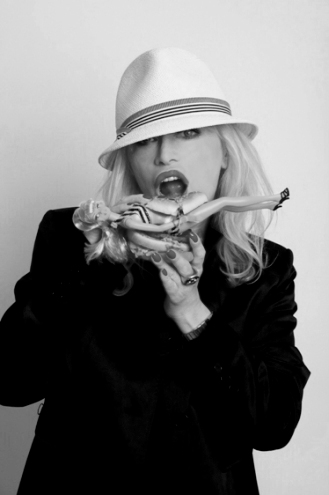 Einen Tag später. Manolo Blahnik macht 'nen Schuh. Silvia Kainka möchte auch wieder aufbrechen. " Mein Terminkalender ist voll! ", sagt sie mir am Telefon. " CU gleich, bin morgen wieder unterwegs. " Silvia muss geschäftlich nach Tokio fliegen. Vor ihrer Abreise besuche ich sie deswegen noch am Abend in ihrem Office. Ganz schön locker: Beine, " Apple "-Laptop, Lipstick " Jungle Red " von Nars und Schampus auf dem Tisch - Ladyboss Silvia geht ihren Job eher unkonventionell an. Von Kopf bis Fuß auf lässig eingestellt. Was für andere harte Arbeit ist, kostet sie nur ein Lächeln. " Ich habe es immer als großes Glück betrachtet, dass ich nicht morgens um neun im Büro auftauchen muss. Ich habe keinen klassischen Nine-to-five-Job, weil ich mir die Arbeit selbst einteilen kann. Das ist eine kleine Freiheit. Und das ist die Rebellion des Rock 'n' Roll: Ich kann tun und lassen, was ich will - und wann ich will. YEAH I LIKE THAT." Sie duftet nach " Opium " von Yves Saint Laurent. Silvia trägt ein schwarzes Lederkleid von Gucci und flippige Schuhe von Jimmy Choo. Wie fast immer trägt sie auch einen Hut. Denn Hüte sind ihr Markenzeichen. Weil Mrs. Vipywood und ihre Komplizinnen immer hippe Hüte tragen, nennt man die coolen Ladies schon" The Hat Pack!" Silvia lächelt: " Wie sagte schon Paris Hilton: Dress cutte wherever you go, life is too short to blend in. " Zu ihren Favoriten im Modebusiness zählen u..a. Jean Paul Gaultier und Vivienne Westwood: " Das sind einige der Designer, die in der drögen Modewelt Mut zur Extravaganz zeigen! " Modeverrückt war sie immer schon. Wie es der Zufall wollte, lernten wir uns dadurch kennen. Ich traf sie zum ersten Mal 2009 auf dem Weg zur Pret-a-Porter-Modenschau von Chanel in Paris. Ein gemeinsamer Freund und Fashion-Designer machte uns bekannt.